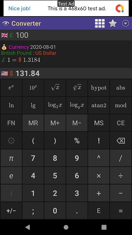 Calculadora científica y una colección de fórmulas/constantes matemáticas comúnmente utilizadas por los estudiantes universitarios.