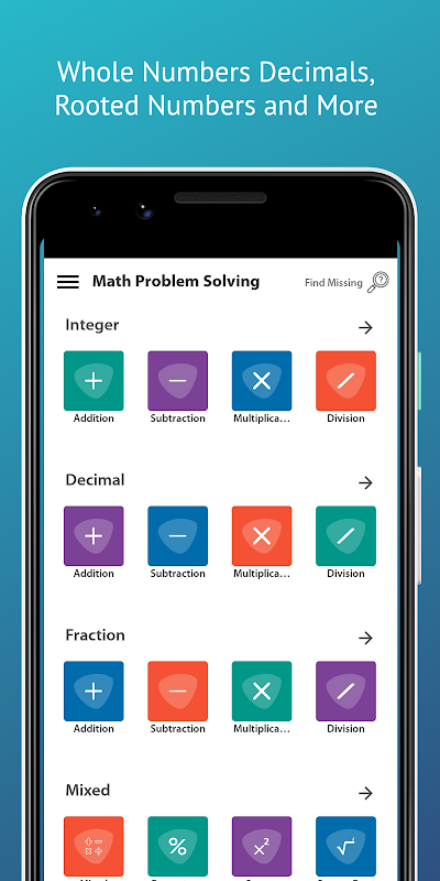 En el área de búsqueda de su faltante, se enfrentará a cualquier pregunta. Mejore usted mismo respondiendo las preguntas. Serás un genio a partir de ahora con la aplicación de resolución de problemas matemáticos.