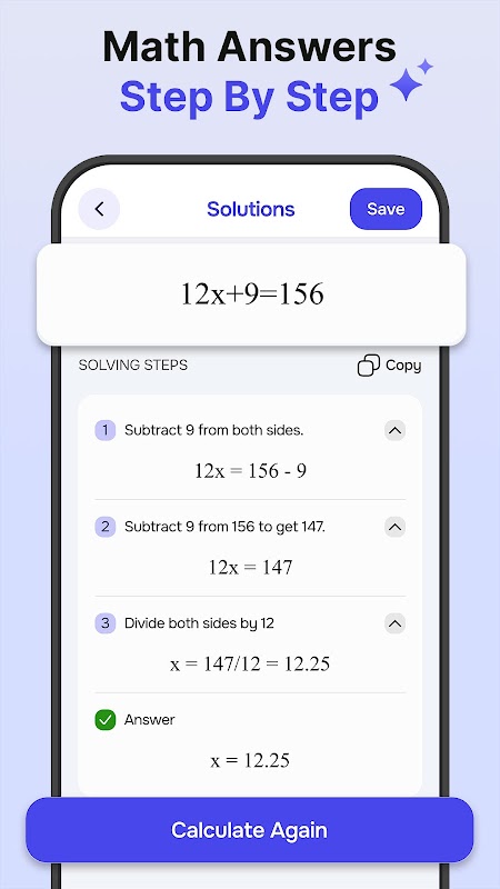 ¡Olvídate de los problemas con los números! Simplemente toma una foto del problema y la app se encargará del resto, ofreciéndote soluciones paso a paso y una potente calculadora integrada.