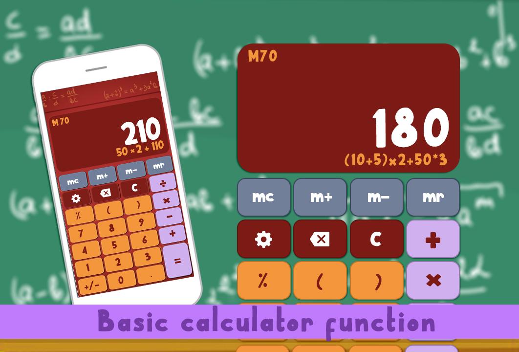 ¡Haga su tarea de matemáticas con facilidad con esta calculadora matemática para niños! Calculadora app. Siempre es más fácil estudiar y hacer la tarea si tienes un equipo escolar bueno e interesante. ¡Ahorre dinero e instale este Calculadora De Matemáticas gratis! Elija entre el fondo rosado de la calculadora, el azul, el verde, el morado y muchas otras pieles coloridas de la calculadora. Elija su diseño de calculadora favorito y comience a resolver problemas matemáticos y ecuaciones. Mejor calculadoras cientificas. Esta calculadora escolar para niños hará que tus matemáticas sean más fáciles y divertidas. Calculadora gratis. ¡Realiza funciones básicas de la calculadora como sumar, restar, multiplicar y dividir en tu calculadora decimal personalizada y terminar tu tarea de matemáticas a la velocidad de la luz! Descarga gratis calculadora matemática. Esperarás resolver ecuaciones matemáticas porque tienes esta aplicación de resolución de problemas matemáticos fácil de usar como tu compañero de estudio. Calculadora con fracciones. ¡Trae un poco de color a tu asignatura de matemáticas y revisa la tarea de matemáticas usando esta calculadora de prueba escolar!