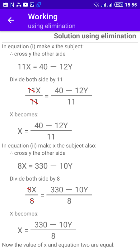 La aplicación resuelve ecuaciones simultáneas mediante el método de sustitución y eliminación.