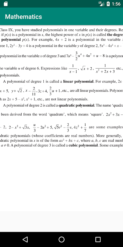 Libro de texto de matemáticas de décimo grado con todos los capítulos. Esta es la décima aplicación de libro de matemáticas que tiene cada capítulo de 10 matemáticas con soluciones, preguntas y respuestas. La aplicación de libro de clase 10 de Matemáticas ayuda a los estudiantes y maestros a hacer notas y conceptos de bateo para los exámenes CBSE y NCERT. Esta aplicación de libros de texto de clase diez también es útil para los candidatos a exámenes de la junta estatal y de la junta central para desarrollar sus conceptos en matemáticas. Matemáticas del libro de texto NCERT para la clase diez en inglés.