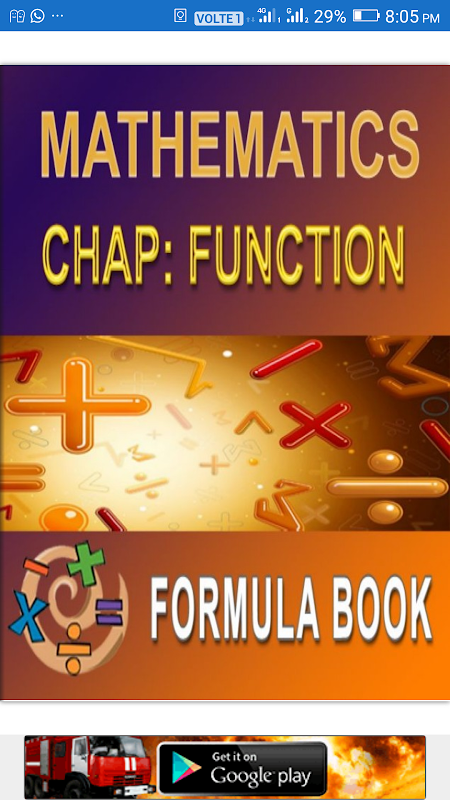 MATHS FORMULA BOOK FOR FUNCTION IS VERY IMPORTANT FOR 11 & 12 TH SCIENCE STUDENT AND ALL MATHS TEACHERS. THIS FORMULA IS USE FOR FUNCTION.