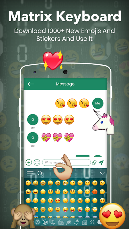 Matrix Keyboard es un teclado de estilo de fuente de matriz que se aplica en el teclado de su teléfono con cualquier tipo de mensaje a los caracteres matriciales utilizados.