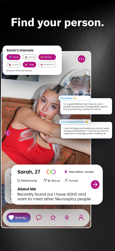 Si eres neurodivergente, LGBTQ+ o simplemente buscas autenticidad, Mattr está diseñado para apoyar las citas conscientes para todos. Con más de 10 opciones de género y perfiles personalizables, aquí puedes sentirte como en casa.