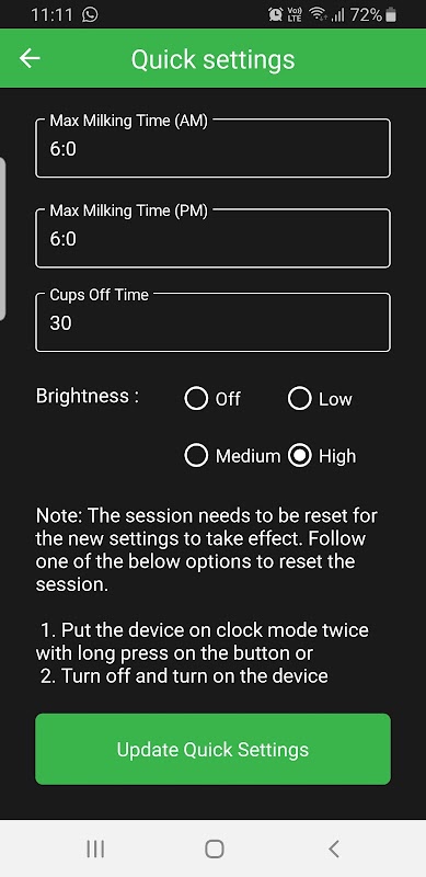 • Establecer para una hora de ordeño diferente a la mañana / tarde
