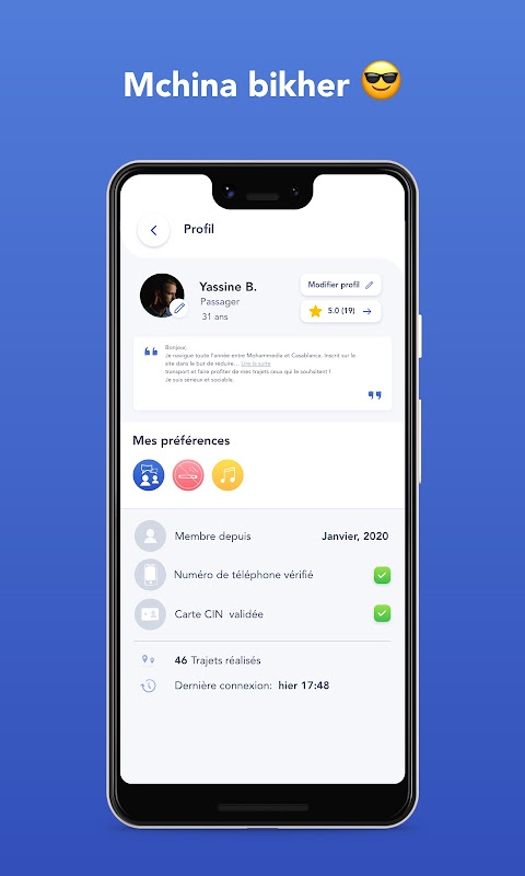 - Tus viajes se realizan con confianza, todos los miembros son controlados gracias a la recopilación de CIN y evaluados después de cada viaje.