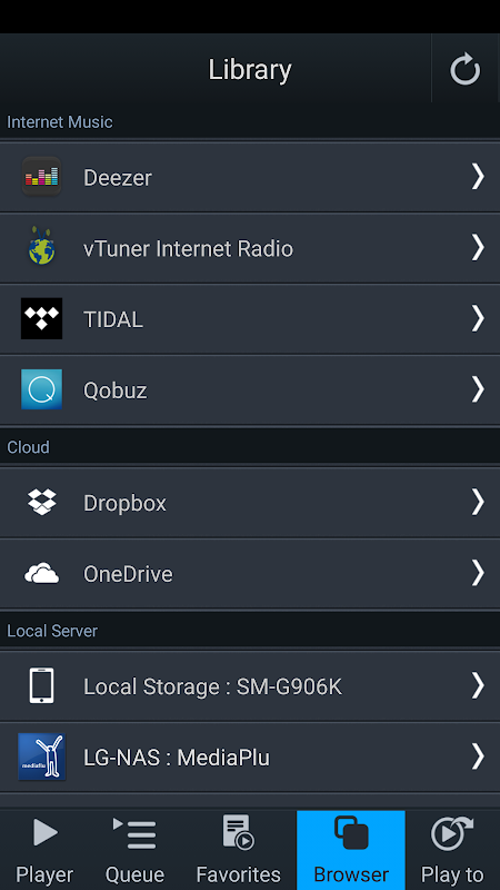 3. Los archivos de reproducción de música con PC y almacenes conectado a red (NAS) con el teléfono y la tableta.