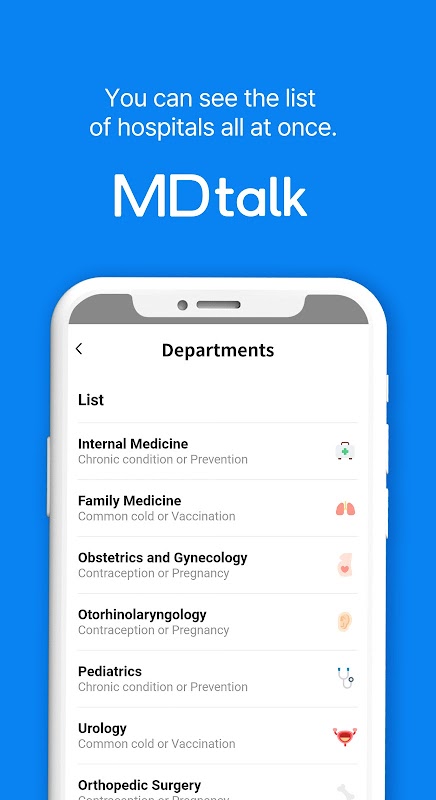 MDtalk World es un servicio que utiliza una plataforma móvil para consultar con un médico sobre sus síntomas, y el médico brinda consultas médicas en la plataforma.