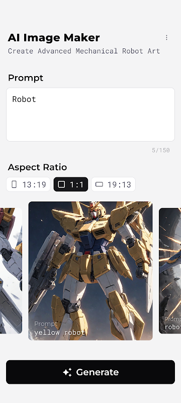 - Interfaz simple: simplemente describe tu mecha y observa cómo cobra vida.