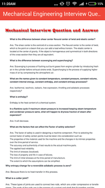 The questions here also contains starting from the basics for the beginners and to the core of the advance learners. So this app is suited for both young learners as well as the advance learners. The application also be used to understand more on the mechanical engineering like what is mechanical engineering its scope and other related understanding of the same.