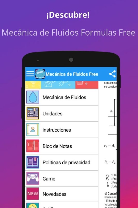 ¡Descarga ya y disfruta siempre de tu nueva app Mecánica de Fluidos Formulas Free es gratis!