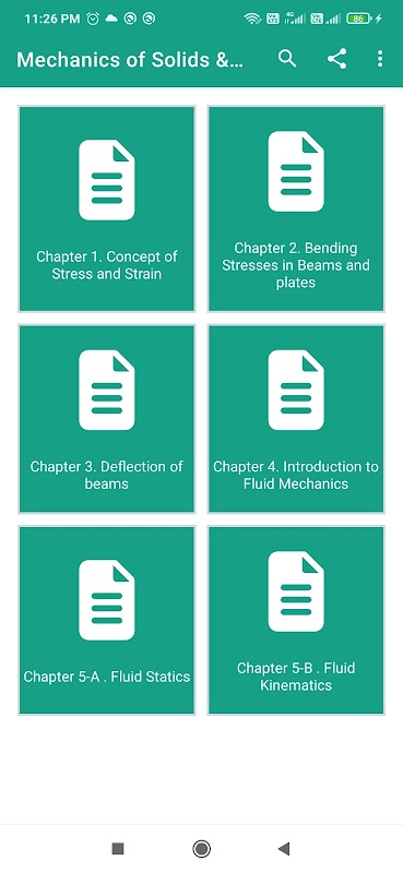 Mecánica de sólidos y fluidos para estudiantes de ingeniería mecánica. La aplicación Mecánicos de sólidos y fluidos cubre casi temas importantes por capítulo
