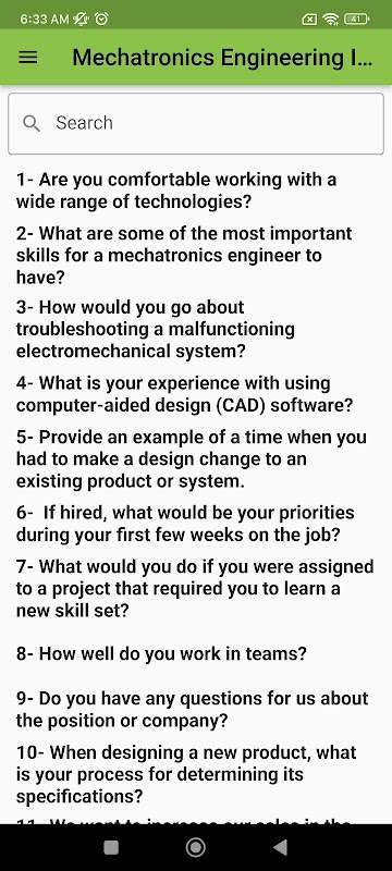 ¡Prepárate para el éxito y destaca entre la multitud! Descargue Mechatronics Engineering ahora y dé un paso más para conseguir el trabajo de sus sueños a través de un desempeño estelar en entrevistas técnicas.