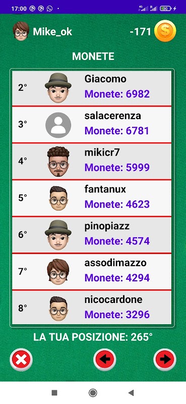 ♦ ️ CLASIFICACIONES y ESTADÍSTICAS: realiza un seguimiento del número de partidas jugadas, las ganancias, los puntos y las monedas acumuladas. Compara tus estadísticas con las de tus amigos y con las de todos los demás jugadores.
