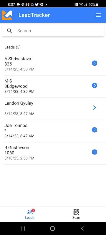 Una vez que haya escaneado un cliente potencial, puede tocar su nombre en la lista para abrir el formulario de calificación de clientes potenciales y guardar detalles adicionales.