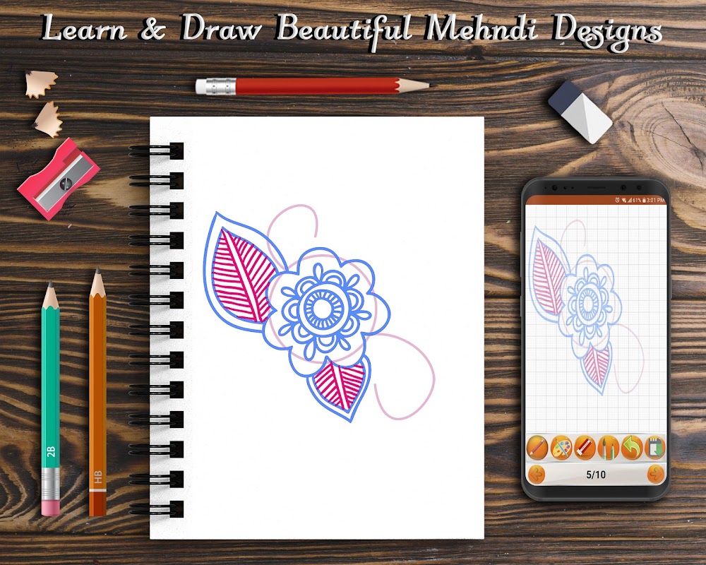 Aprende a dibujar hermosos diseños de Mehndi es una aplicación de aprendizaje que te enseña cómo dibujar hermosos patrones de mehndi paso a paso. La aplicación Learn mehndi designs es una actividad totalmente entretenida y divertida para enseñarle a aprender a dibujar diseños básicos de mehndi de todo tipo. A todas las chicas les encanta dibujar tatuajes de mehndi en su piel y, con la ayuda de esta aplicación, puedes dibujar los últimos diseños de mehndi que te harán lucir diferente a los demás en cada ocasión.