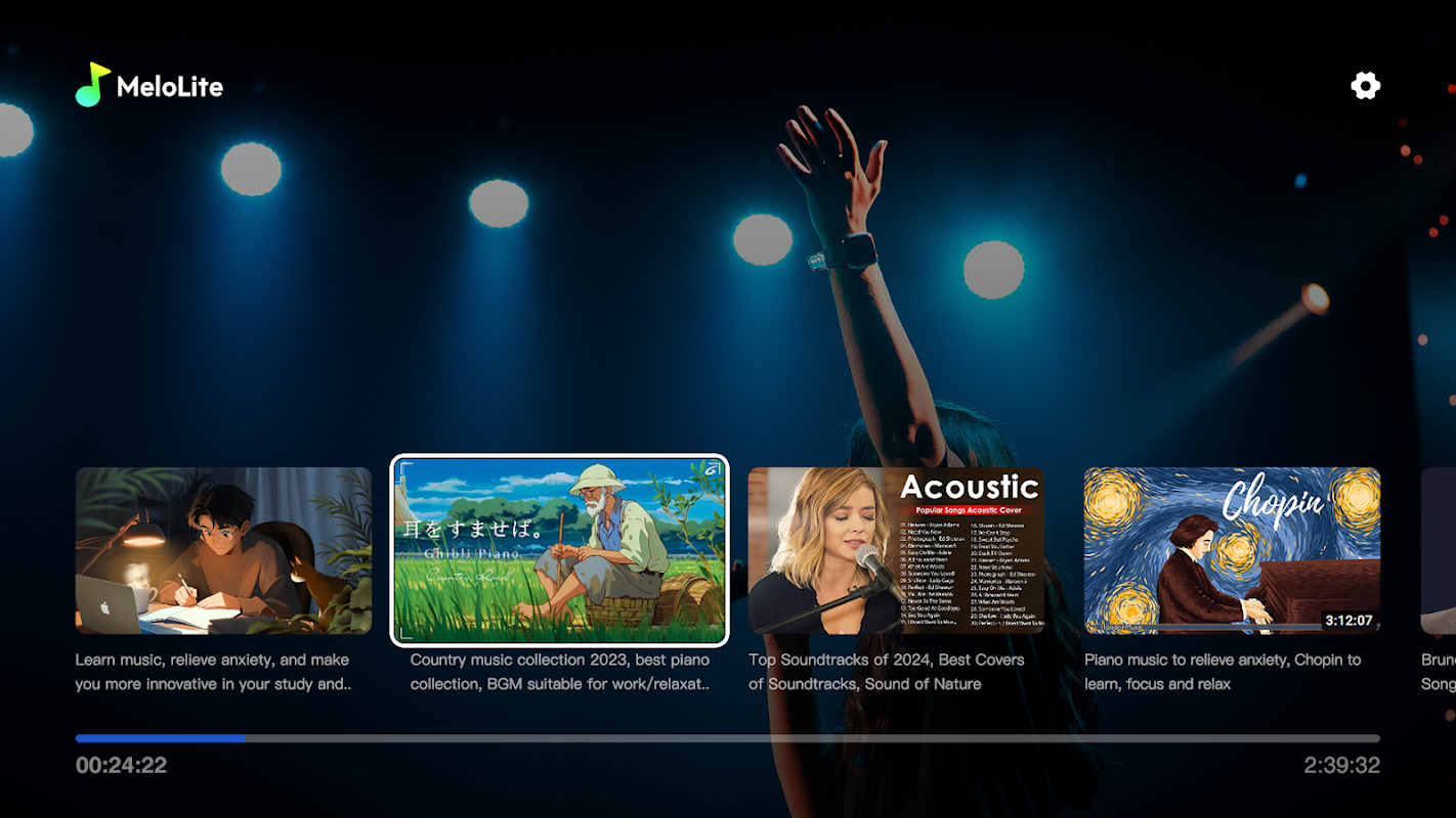 MeloLite es una aplicación de música hermosa y relajante que brinda a los usuarios una experiencia de alta calidad al escuchar música ligera. La biblioteca de música de MeloLite contiene música ligera clásica de todo el mundo, incluido piano, violín, guitarra y más, lo que le permite disfrutar de un momento de relajación y placer en su ajetreada vida.