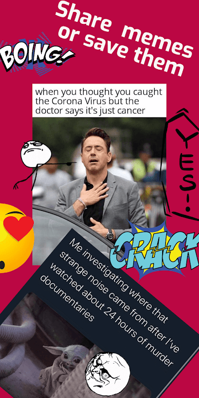 El generador de memes te permite compartir memes divertidos y guardarlos en tu galería, también puedes ajustar el color y el tamaño del texto libremente con más de 60 fuentes para elegir para crear memes divertidos complejos modernos o clásicos con múltiples subtítulos, otra herramienta ultra que combina múltiples guardados memes en un meme multipanel sin ninguna marca de agua!