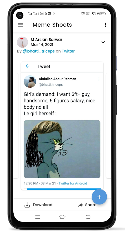 You can use our app to view best memes in form of images which you can download, share and set as status. We post new memes daily so you will always find up to date and trending memes here.