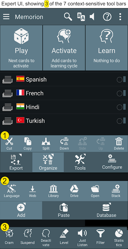 • Las pilas de cartas se pueden descargar desde Anki, Memrise