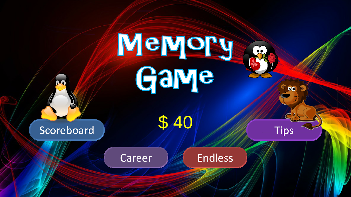 Play repeatedly to increase your memory power by beating your best score.