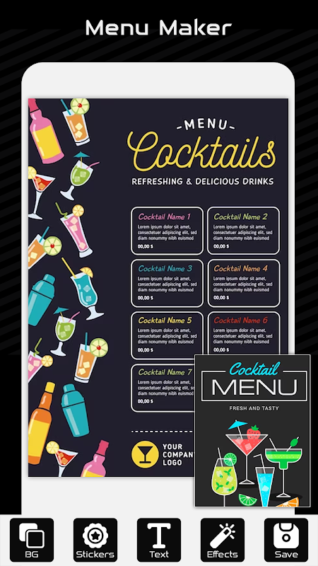 - Muy buena aplicación de creación de menús para restaurantes, cafés, bares, menús de tiendas y crear una plantilla para eventos.