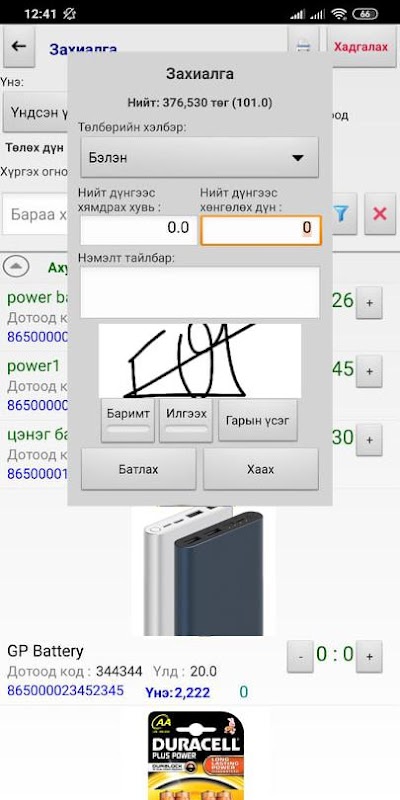 * Барааны кодыг камераар уншуулан бүртгэл хийх.
