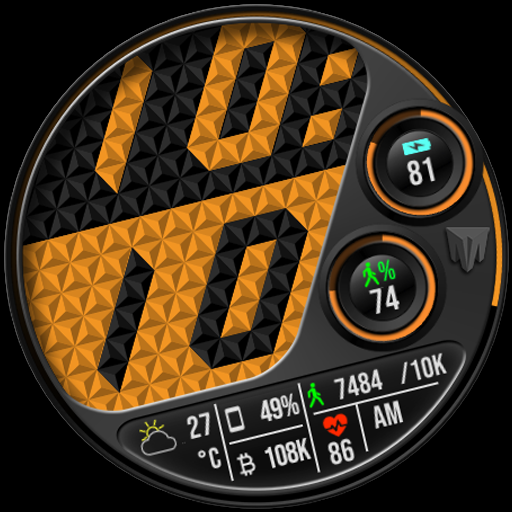 Disfruta de esta esfera digital de reloj inteligente con un diseño único y fuente digital personalizada "Clos Triangular" con patrón guilloché que se integra a la perfección con el fondo guilloché, diseñada para Wear OS.