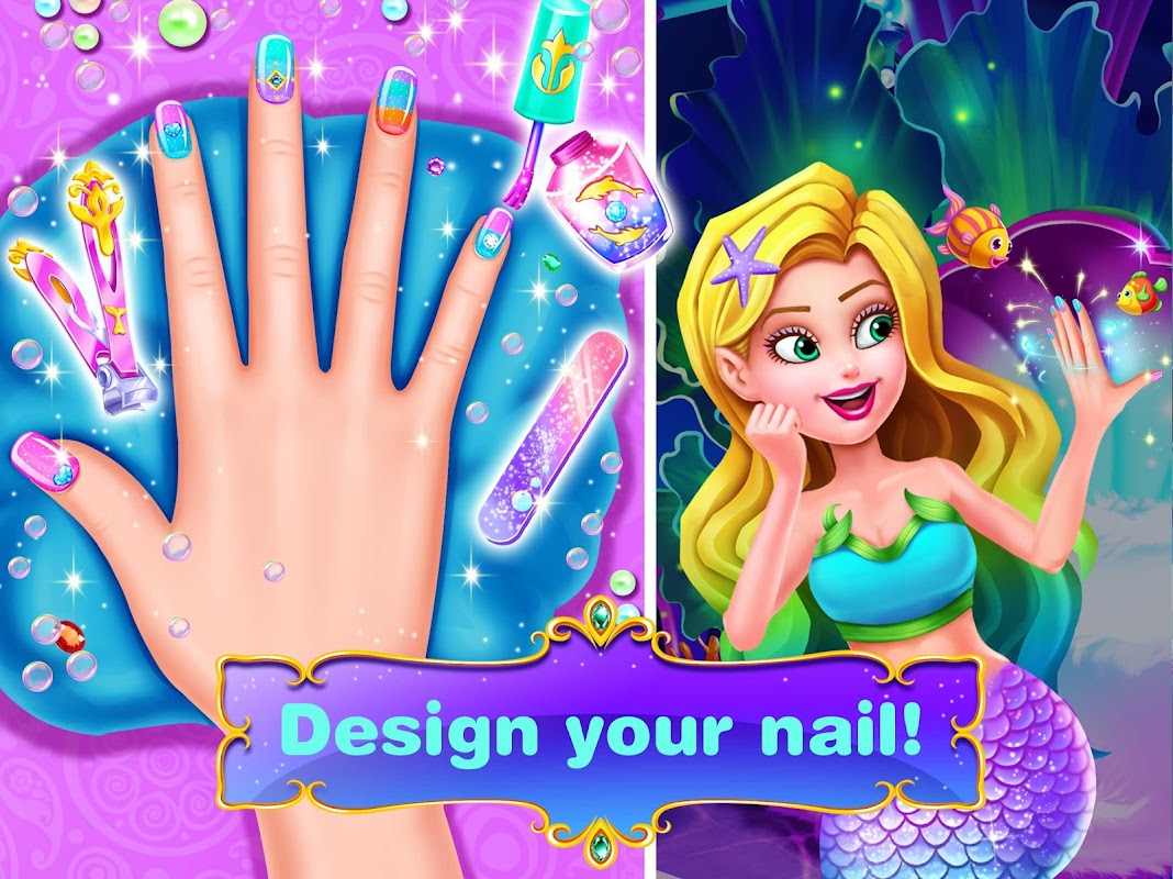Habrá una fiesta de princesas de sirenas para la niña sirena Mia para presentar a su príncipe Eric al mundo de las sirenas bajo el mar en los juegos de chicas sirenas. Hagamos un salón de belleza para la princesa en el mar en el día del spa de los juegos gratuitos para niñas. ¿Y qué tal un brillante salón de uñas después del spa Princess Salon en Sirena Princess Salon? Pintar las uñas para ser uñas de moda y uñas brillantes en el salón nail art es atractivo para las princesas en nuestros juegos de sirenas. Después de la fiesta del spa en el castillo de la princesa sirena, la fashionista se presenta bajo el agua: ¡Mia y su amado Eric están nadando en el baile del palacio real! ¡Todos los animales marinos y las sirenas están bailando con la música ahora! ¡Únete a ellos en los juegos de diversión gratis juntos!