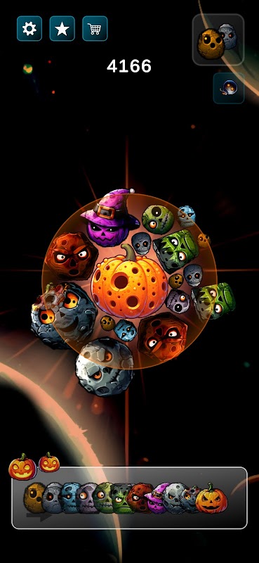 En el juego "Meteorito" tu tarea es conectar meteoritos del mismo color. Cada fusión hace que los meteoritos se fusionen en uno más grande.