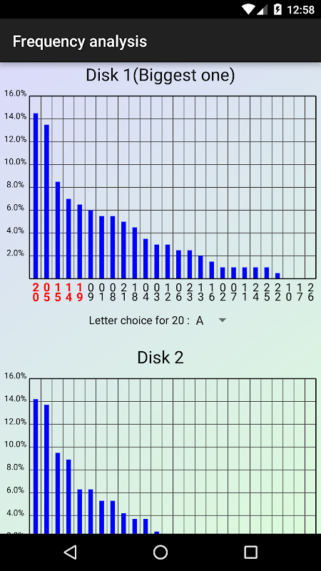 Puede cifrar y descifrar un mensaje y mostrar el análisis de frecuencia para cada disco.