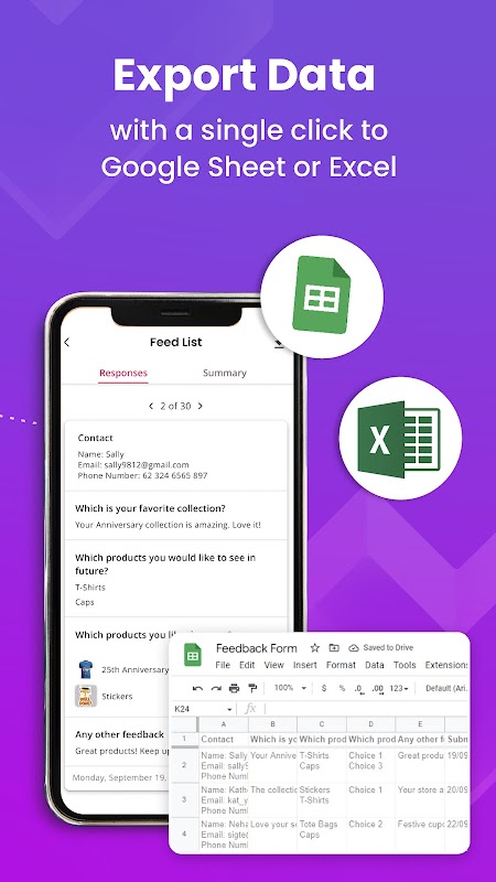 ✓ Descargue datos como PDF, Excel o conéctese a Hojas de cálculo de Google