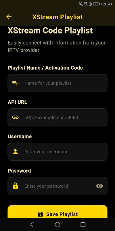 Compatibilidad total con varios formatos de streaming: M3U, XTRAEM API y otros archivos de streaming populares, lo que te permite reproducir fácilmente cualquier contenido IPTV.