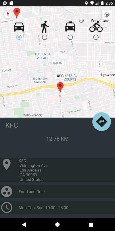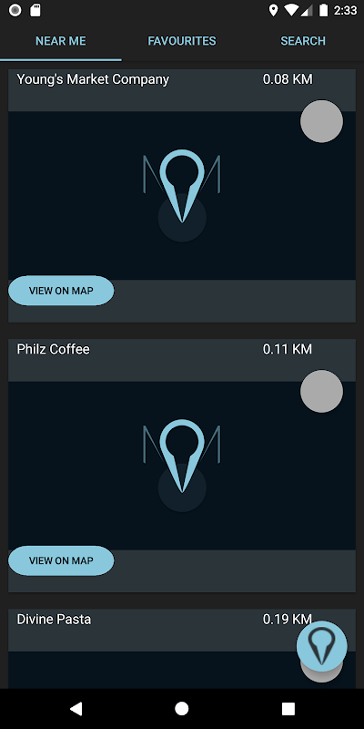 A mapping application that shows user's locations for different types of places around them