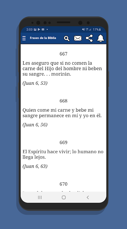 Mil Frases de la Biblia es una app que contiene alrededor de mil frases bíblicas para meditar en la vida diaria. Contiene frases de todos los libros de la Biblia Católica completa.