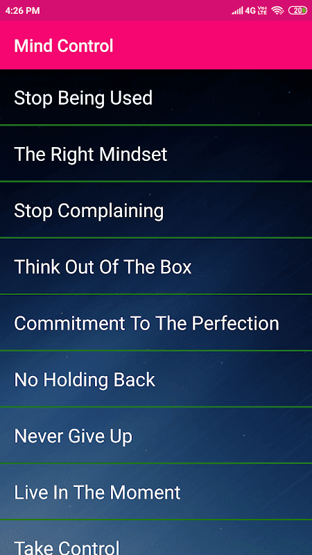 Mind control is a very powerful tool if you can do it. Your thoughts are signals and the power of thoughts can be harnessed using meditation and simple techniques that anyone can do. We inspire, we help you dream, and hope for the best. Success secrets and maintaining discipline are the signs of successful people. If you want to be truly successful, this application is for you.