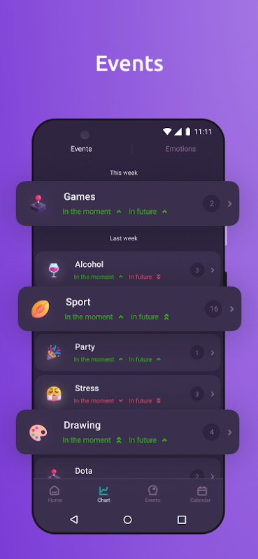 Analice su estado basándose en estadísticas: ¿qué eventos suelen acompañar al buen humor? ¿Qué afecta tus niveles de estrés? Identifique patrones en su estado, use recordatorios de calendario y tome notas sobre sus experiencias.