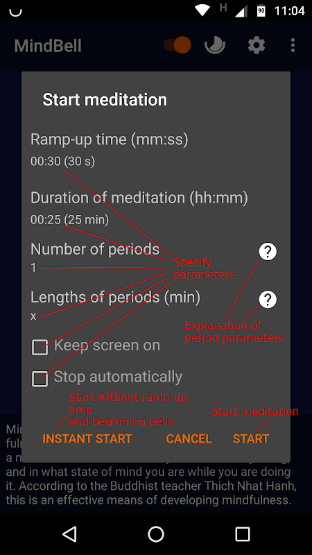 Además, MindBell puedes ser utilizado como cronómetro de meditación.