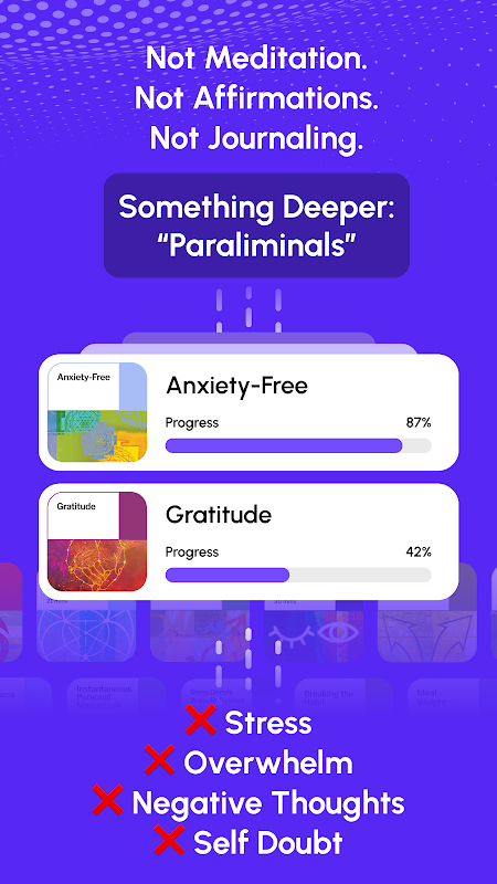 Nuestras sesiones únicas, llamadas Paraliminales, están diseñadas para trabajar con su mente no consciente (mente interior, mente subconsciente) para promover el autodesarrollo, el crecimiento personal y la autotransformación. Millones de personas ya han utilizado estas poderosas herramientas durante más de 35 años para desbloquear todo su potencial.