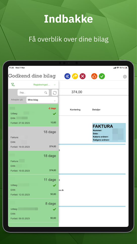 My Documents es la aplicación de KMD para procesar facturas propias y adjuntas, notas de crédito y documentos de gastos. Puede aprobar, reenviar y posiblemente rechazar archivos adjuntos.