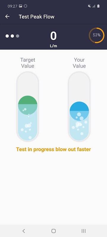 - Sople en el medidor y presione el sensor de oximetría: los resultados se muestran en tiempo real en la aplicación