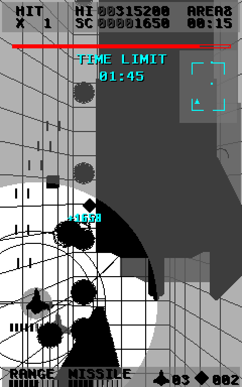 El cursor de bloqueo se muestra sobre tu avión. Mientras presionas el disparo, el cursor se acerca. Puedes bloquear haciendo coincidir el cursor con los enemigos. El alcance del cursor y el número de bloqueos aumentan al tomar el elemento de encendido.