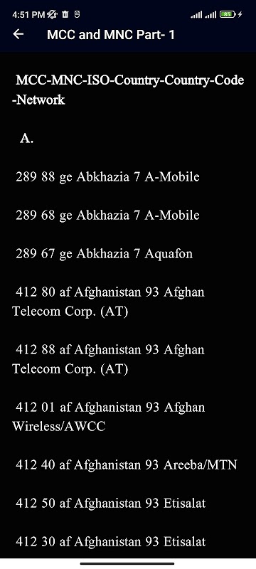 Información de Mobile Network Codes (MNC) APK
