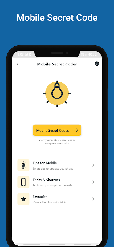 App includes secrets codes of all mobile companies and all Android mobiles. You can view tips and tricks from app to view hidden settings and information.