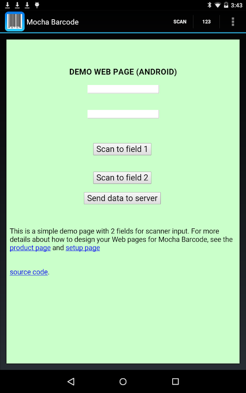 Mocha Barcode es un navegador web estándar con soporte de código de barras. Facilita la creación de aplicaciones web para uso de la empresa. Escanee códigos de barras directamente a su página web y solicite al servidor de la empresa que devuelva datos en línea, como información de productos y productos en stock.