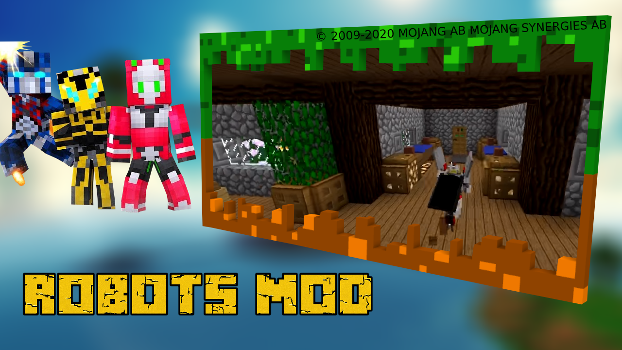 Robot mod es un transformador con una poderosa armadura junto con las armas más fuertes, es como si te convirtieras en Tony Stark, pero no eres el dueño de un solo traje, sino de más de diez a la vez, pero una cosa: puedes usar solo una armadura. Lo único que necesita saber es que el kit no aparecerá solo, debe estar diseñado. Para la elaboración, necesita cristales en bruto y, gracias al proceso de energía, convertirá un combustible potente. También es una forma agradable de recordar una hermosa caricatura con la participación de transformadores, además de una armadura como un hombre de hierro (para defensa y ataque). Puedes moverte tan rápido como en un automóvil, porque el robot puede convertirse en una máquina de guerra que puede atacar a los monstruos. También tendrás la oportunidad de convertirte en un avión y volar por encima de las nubes. Pero para equilibrar, agregamos robo-guerreros enemigos que también son bastante fuertes y no te permitirán correr en silencio. ¡Pero para tales batallas hay robots especiales que pueden transformarse en un tanque! La capacidad de atacar con fuego y poderosas armas de plasma: todo esto está disponible después de equipar la armadura de hierro. Tienes la oportunidad de entrar en el futuro y organizar guerras de robots con tus amigos.