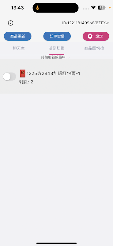 Sala de chat, cambio de actividad, cambio de imagen de producto