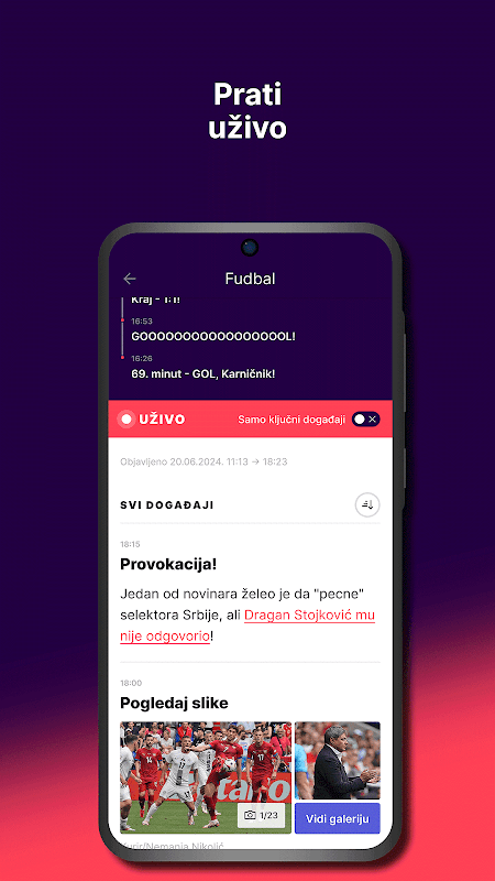 Opcija “UŽIVO” gde možeš da pratiš sve ili samo najvažnije događaje u realnom vremenu