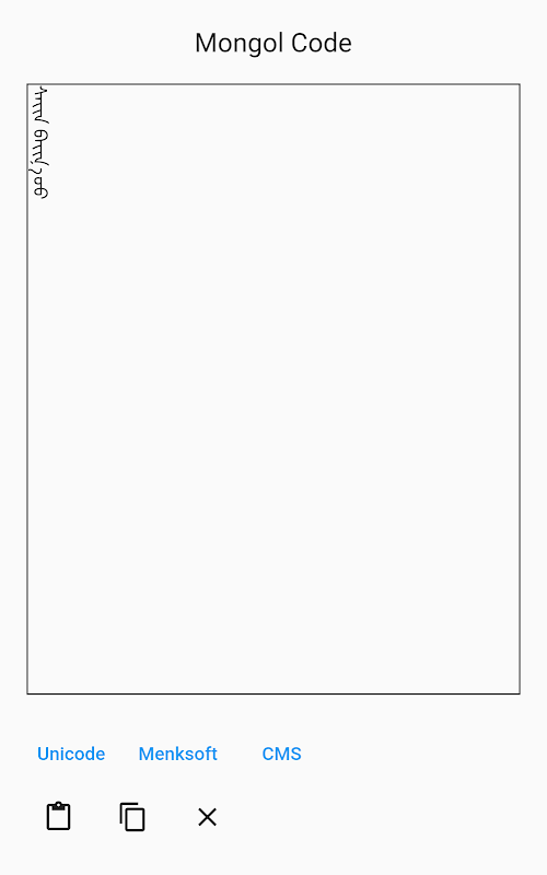 Esta aplicación convierte Unicode para el script tradicional mongol en código Menksoft y código CMS. Si no conoce la diferencia entre estos códigos, entonces esta aplicación probablemente no sea para usted.